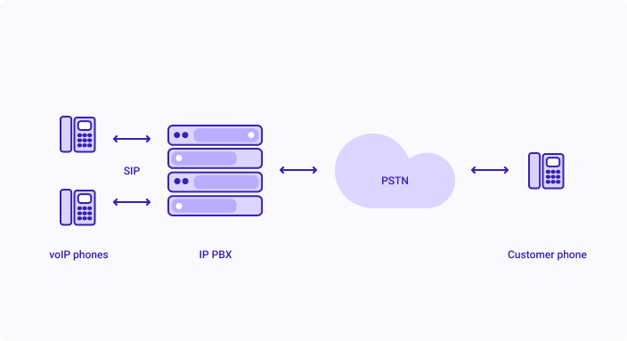 An IP PBX is a business telephone system. Any VoIP call first communicates with your IP PBX. After receiving the phone call, the IP PBX identifies the destination and routes it further. This applies to either an internal call to a colleague or external to the Public Switched Telephone Network (PSTN).